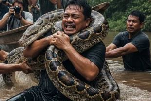 Гид в Индонезии едва не погиб в схватке с гигантским питоном