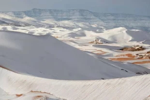 В одной из самых жарких пустынь мира — Сахара — выпал снег