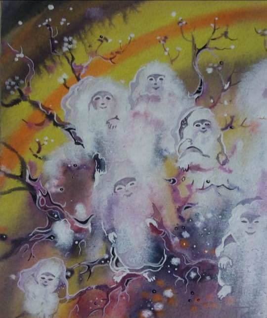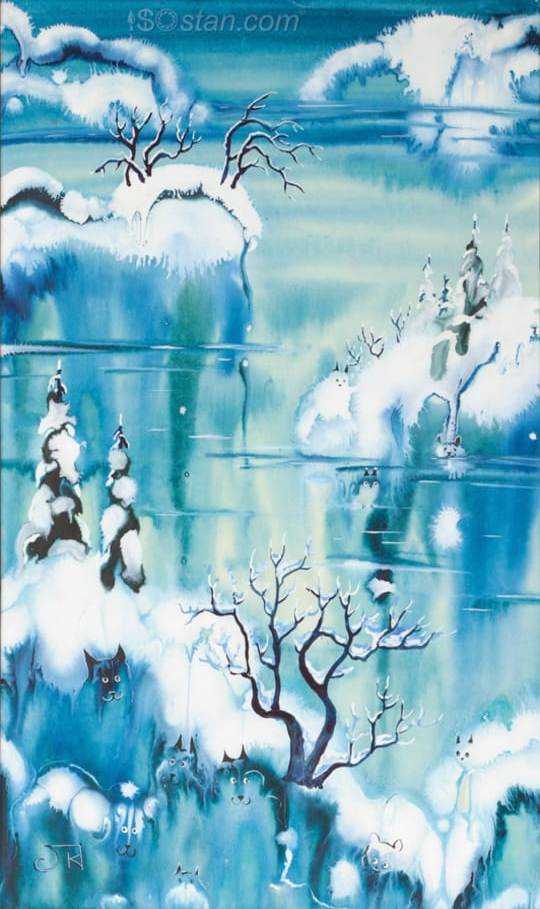 – Свой собственный путь в живописи, а это мир акварели, я создала, синтезировав японский стиль тарасикоми, где второй слой краски наносится до того, как высохнет первый, – эффект естественной текстуры ряби на воде, коры дерева, лепестков цветов, а также смешение цветов, и китайский стиль гохуа, в котором используются минеральные и растительные водяные краски на шёлке и бумаге. А мой стиль называется «тёплый иней» – «нуан шуань» по-китайски. Я сама варю краски, в них используется мёд, смола сливы и кое-что ещё. На сегодняшний день мною создано 3000 графических работ, 1500 акварелей, 5000 деревянных панно и более 500 стихотворений. В 1999 году я была официально приглашена в Китай, побывав в Пекине, Шанхае и Синьцзян-Уйгурском автономном районе (Урумчи). Так получилось, что Министерство культуры отправило меня в КНР не одну, а с нашими деятелями литературы и музыки, и мне пришлось возглавить нашу мини-группу. Мои основные циклы – это «Джунгария», «Степные пейзажи» «Космос», «Сказки», «Фантастика», «Уникальные места природы Казахстана», «Китайско-корейско-японские пейзажи», «Цветы, бабочки, рыбки». Друзья шутят, что мои картины есть везде, кроме Антарктиды. И действительно, мои работы находятся в частных и государственных коллекциях США, Канады, Мексики, Великобритании, Франции, Италии, Испании, Германии, Нидерландов, Бельгии, Швейцарии, Швеции, Австрии, Венгрии, Чехии, Румынии, Болгарии, Греции, Польши, России, Украины, Беларуси, Литвы, Турции, Грузии, Ирана, Израиля, Индии, Китая, Южной Кореи, Японии, Австралии, Египта. В 1998 году Папский нунций в Казахстане Мариан Олесь привёз мою картину «Готика природы» в Ватикан – в подарок Папе римскому Иоанну Павлу II.