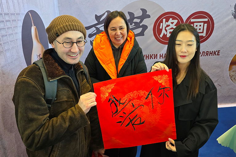 Одной из самых познавательных страниц фестиваля стало погружение в нематериальное культурное наследие Китая. Все могли проверить свои способности в каллиграфии, выжигании рисунков на тыкве-горлянке, вырезании фигур из сложенной бумаги (цзяньчжи), чайной церемонии, а также поучаствовать в старинных играх – бросании стрел в сосуд и набрасывании обручей. Команда журналистов из Алматы продемонстрировала, как вырезать из бумаги фигуру с семью лучами «Звезда Жетысу», в которой зашифрованы символы этого края. Эта фигура была разработана наставниками алматинской школы «ШаоБао» в рамках мастер-класса «Бумагия».