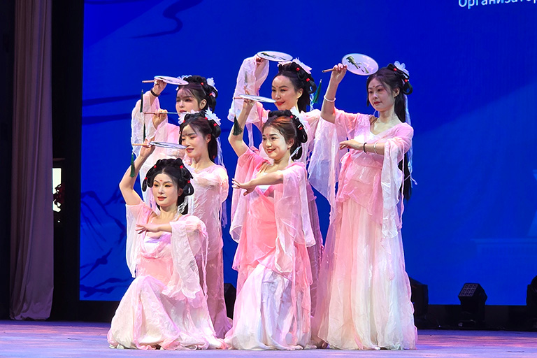 На открытии можно было увидеть выступления творческих коллективов университетов Астаны, Алматы, Урумчи. Казахские распевные песни и танцы с джигитовкой в исполнении астанинских студентов чередовались с китайскими номерами, такими как шоу масок или чайная церемония, в которой длина носика чайника превышала один метр, эту эквилибристику представила преподавательница из Кульджи Лю Рон.