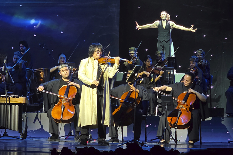 В 2025 году широко отмечалось 100-летие со дня рождения выдающегося казахстанского композитора Нургисы Тлендиева. Великолепный подарок для казахстанцев к этому юбилею сделала команда продюсера Кайрата Кульбаева, в которую вошел скрипач-виртуоз Марат Бисенгалиев. Они объединили музыкантов и танцоров Казахстана, России, Индии и представили мультимедийное шоу Qustar («Птицы»). В его основу легли интерпретации на музыку Тлендиева, созданные канадским композитором Дмитрием Вареласом. Этническое звучание шоу обеспечил дуэт «Аркаим» (Абзал Арыкбаев и Анар Касымова). Марат Бисенгалиев не только блестяще сыграл первую скрипку, но и привлек в это представление Симфонический оркестр Индии в Мумбае, которым он руководит. Одним из самых неожиданных решений шоу было вовлечение зрителей в исполнение музыкального номера, когда им было предложено по особому ритмическому рисунку делать хлопки, а также топать. Это наш ответ хиту We Will Rock You.