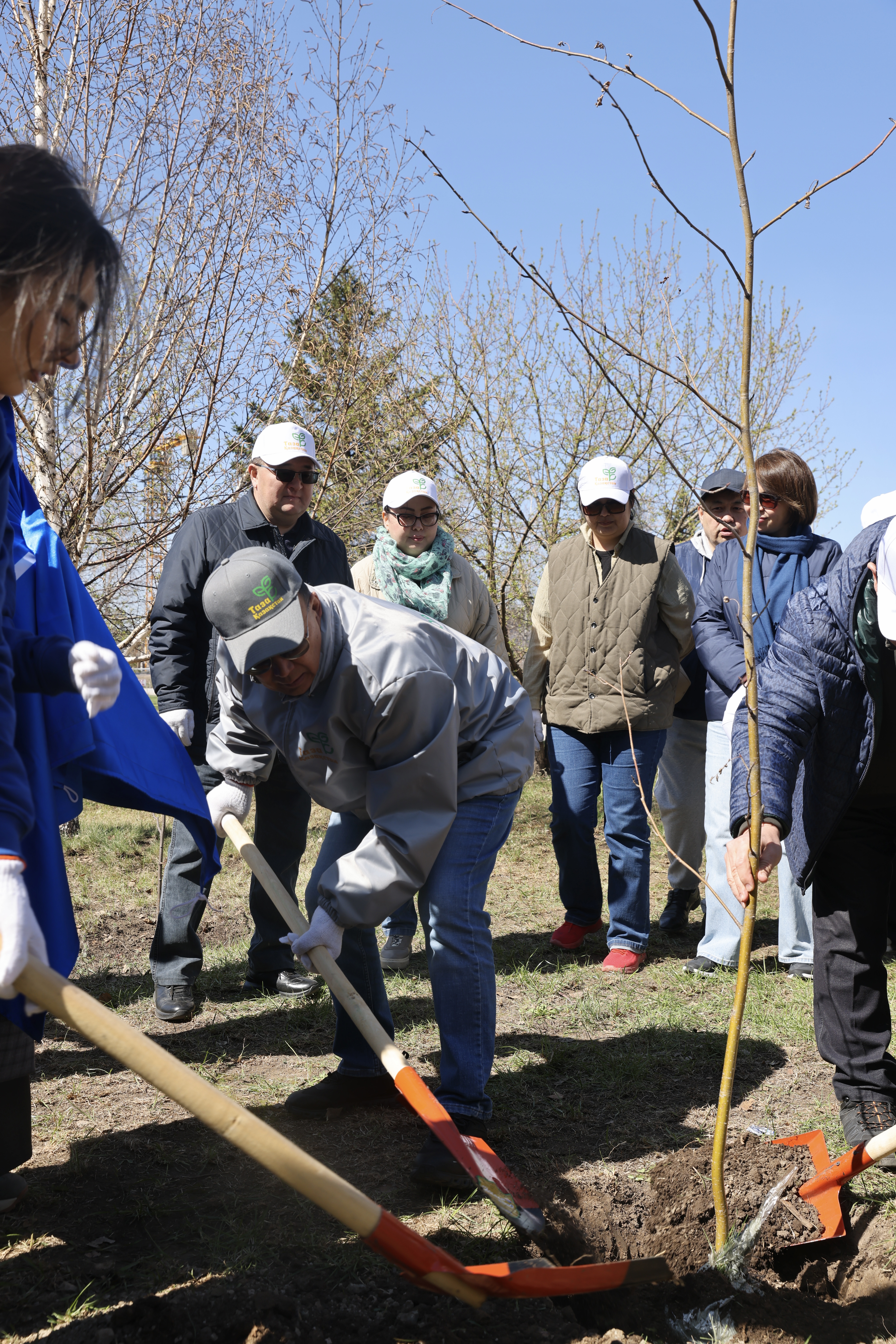 Вместе со студентами и сотрудниками университета ректор также принял участие в посадке деревьев.