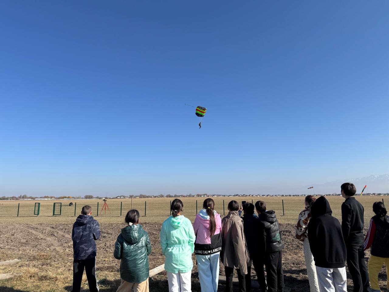 Также у алматинских ребят была уникальная возможность познакомиться с историей парашютного спорта Казахстана. Они посетили аэродром Байсерке и узнали историю краевого аэроклуба Казосоавиахима Крайкома ВЛКСМ и Казсовпрофа. Здесь проводилось обучение пилотов в предвоенные годы, а в годы Великой Отечественной войны воспитанники аэроклуба были на фронте. Когда-то отсюда взлетел первый казахстанский самолет «Арай», здесь проходили летную подготовку будущие герои-космонавты Дмитрий Юрьевич Кондратьев и Талгат Мусабаев. В ходе мероприятия школьники осмотрели самолеты-экспонаты и увидели, как готовятся к прыжкам парашютисты и как они приземляются по завершении полета.