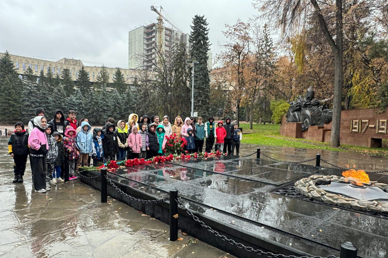 Ребята посетили Военно-исторический музей Алматы, где узнали подробности Сталинградской битвы, сражений на Курской дуге, битвы за Москву, прорыва блокады Ленинграда и Берлинских сражений. Рассказ дополнили экспозиции, которые познакомили со вкладом Казахстана в Победу над фашизмом и представили фотографии, документы, личные вещи героев-казахстанцев. Особе внимание было уделено подвигу военнослужащих 316-й стрелковой дивизии под командованием генерал-майора И. В. Панфилова, участвовавших в 1941 году в обороне Москвы. В зале Панфиловской дивизии Военно-исторического музея Алматы перед ребятами словно ожили события тех времен. Ребята узнали, как подвиг панфиловцев помог переломить ход наступления армии Германии и стал символом отваги, воодушевил многих на борьбу с фашизмом. В завершение лекций школьники почтили память героев у Вечного огня.